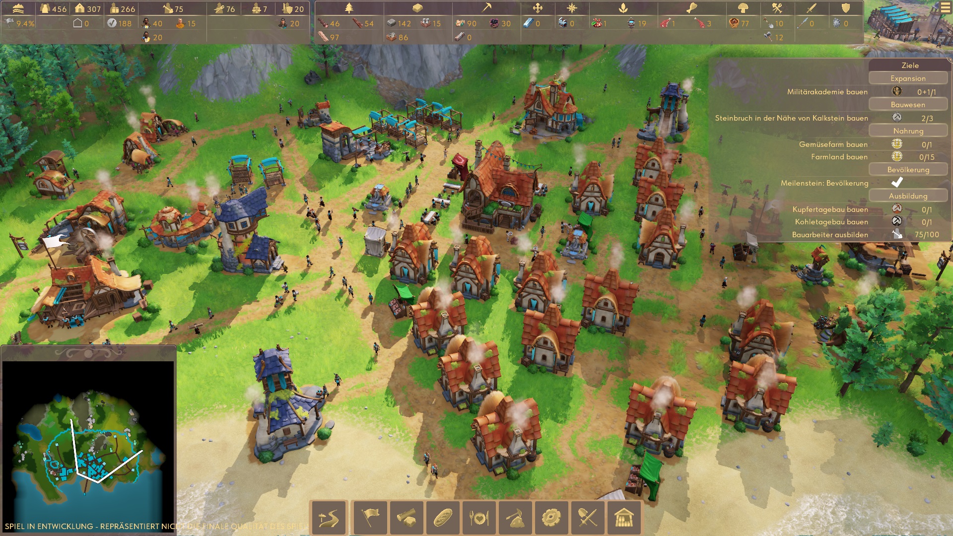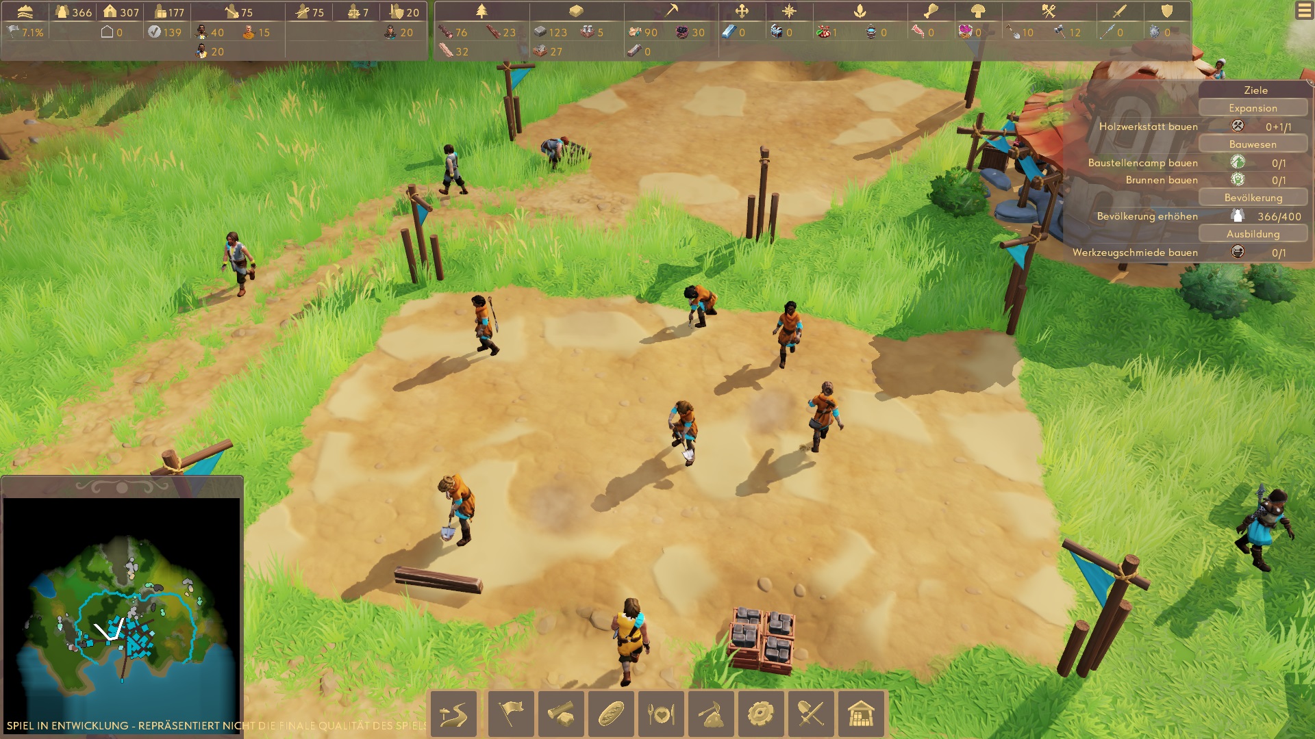 Die Performance kann sich für die Demo eines so jungen Spieles absolut sehen lassen. Auch in späten Abschnitten der Testversion spürte ich auf meinem Mittelklasse-System keine Ruckler und erfuhr keine Abstürze. Ob sich das bei größeren Ansiedlungen im Lategame mit viel mehr Gewusel auch noch so flüssig spielt, muss das Studio wahrscheinlich während der Early Access Phase optimieren.